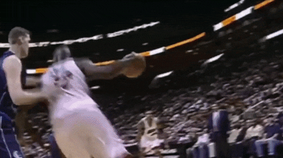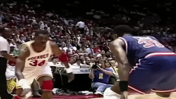 在乔丹退役期间,奥拉朱旺在一众群雄中脱颖而出,先是在94年总决赛四比三逆转尤因的尼克斯,又在95年四比零教育了年轻的奥尼尔。