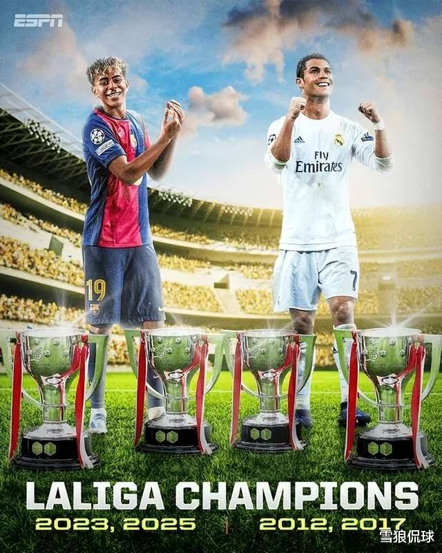3年2冠!亚马尔西甲冠军数已追平C罗欧洲杯冠军