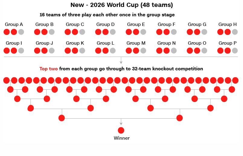 年起,世界杯参赛球队将从32支球队扩军至48支球队,这就意味着在国际足联的211个成员当中,将有接近1/4可以进入世界杯。