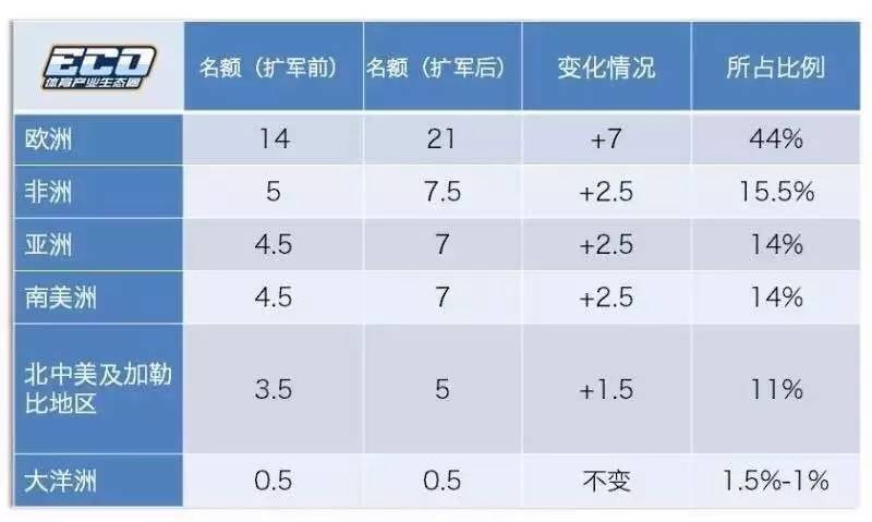 当然,这样的分配猜想仅仅是基于32强的占比率而粗略估算的,也没有增加东道主的因素。