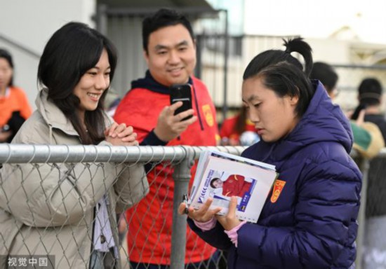 离开前,她们依次来到看台下给球迷签名。“王霜,要连过10人啊!”“张琳艳,要多进球啊!”温暖的祝福让姑娘们连声道谢。