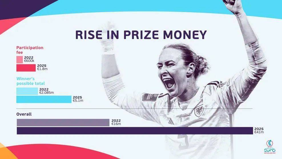 而落实到球员层面,本届赛事规定每个参赛国家足协必须将总收入的30%至40%分配给其球员——这是女足欧洲杯历史上首次明确公布「球员直接奖励」条例。