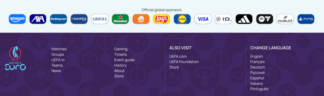 看向女足欧洲杯的赞助版图,相似的「国际化」情况也在上演。欧足联官网显示,本届赛事已吸引来包括亚马逊、阿迪达斯、乐事等在内的15家官方赞助商。从数量看,与上届的8家相比翻了近一倍,知名国际品牌的比例也有了极大提高。